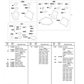 Parts for Briggs & Stratton 185462-0072-01: Carburetor Overhaul Kit, Engine / Valve Gasket Sets Parts