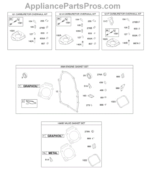 Parts for Briggs & Stratton 303447-1015-A1: Carburetor Overhaul Kit, Engine & Valve Gasket Sets Parts