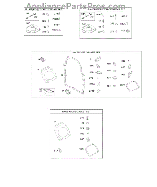 Parts for Briggs & Stratton 356447-0334-B1: Carburetor Overhaul Kit, Engine & Valve Set Parts