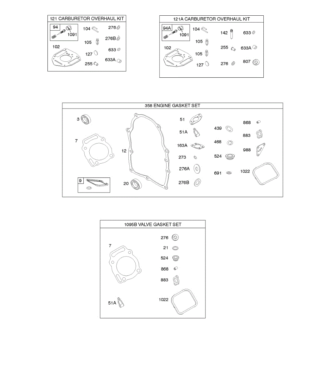Parts for Briggs & Stratton 356447-0337-B1: Carburetor Overhaul Kit, Engine & Valve Set Parts