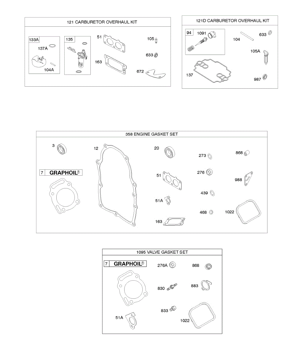 Parts for Briggs & Stratton 385447-0137-B1: Carburetor Overhaul Kit, Engine / Valve Gasket Sets Parts