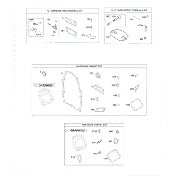 Parts for Briggs & Stratton 385447-0198-B1: Carburetor Overhaul Kit, Engine / Valve Gasket Sets Parts