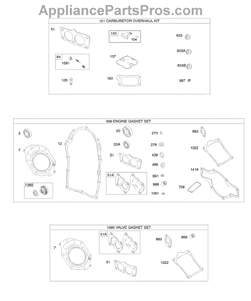 Parts for Briggs & Stratton 613177-0114-E1: Carburetor Overhaul Kit, Engine & Valve Gasket Sets Parts
