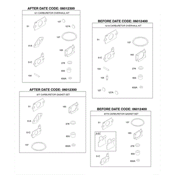 Parts for Briggs & Stratton AA0101-0025-01: Carburetor Overhaul Kit, Carburetor Gasket Set Parts