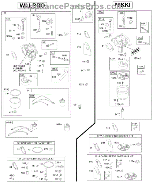 Parts for Briggs & Stratton 287707-1246-E1: Carburetor, Overhaul Kits Parts