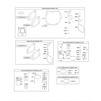 Parts for Briggs & Stratton 350777-1034-E3: Carburetor Overhaul Kits / Sets, Engine Gasket Set, Valve Gasket Set Parts