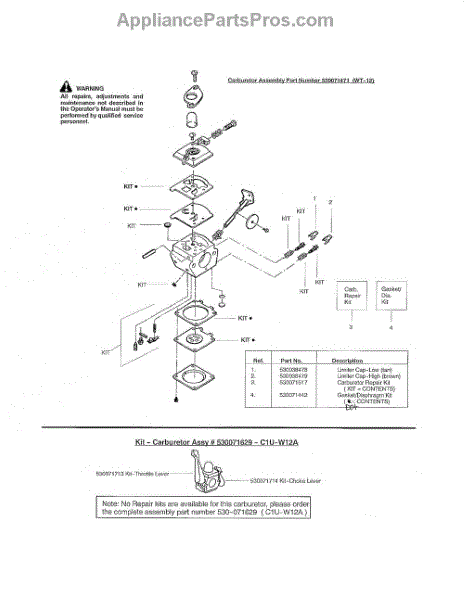 This kit includes all parts necessary to repair the carburetor on certain models of small engine outdoor power equipment.Internal combustion engines require a proper ratio of air to fuel in order to run. The carburetor is responsible for sending a combination of fuel and air to the motor for ignition. Because the carburetor is used every time the engine is started, it can deteriorate over time and may need to be repaired or replaced. Signs of a worn-out or deteriorating carburetor include backfiring, overheating, excessive black smoke, and reduced engine performance. This carburetor repair kit is a genuine OEM replacement part that has been sourced directly from the manufacturer. This carburetor repair kit can be used to fix various different models of Husqvarna, WeedEater, and Poulan blowers, trimmers, and hedge trimmers. Please note this part is sold individually.