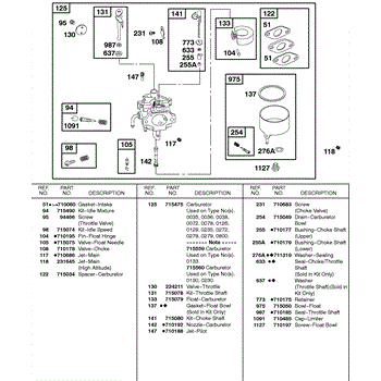 Parts for Briggs & Stratton 085432-0129-01: Carburetor Parts