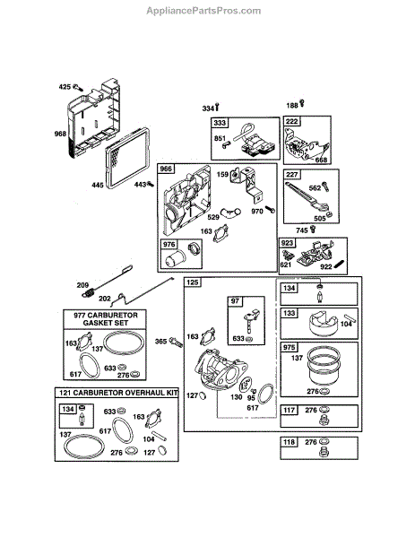 This is a carburetor overhaul kit for 3.5 to 4 HP Max Series Quantum and 5 HP Industrial Plus Engines. It is secured to the side or top of a lawnmower engine, depending on the manufacturer. The carburetor is crucial to the overall performance of an engine because it is responsible for mixing the right amounts of air and fuel. The fuel from the fuel tank flows through a hose into the carburetor, which allows it to drip into a bowl. The carburetor can become dirty or clogged over time for a variety of reasons. When this happens, it is often a good idea to take it apart and replace the components inside. There are other telltale signs that the carburetor needs an overhaul or repair. These include an engine that won't start, an engine that's running lean, an engine that's running rich, and one that's flooded. This high-quality carburetor overhaul kit comes with everything needed to repair or rebuild a carburetor, including gaskets, needle, float, seals, and an instruction manual. Aside from lawnmowers, it works with specific models of leaf blower/vacuums, generators, pressure washers, wood chippers, and small engines from Briggs & Stratton, Craftsman, Cub Cadet, Lawn-Boy, MTD, Murray, Simplicity, and Toro. It is an OEM product sourced directly from the manufacturer and is sold individually. Please refer to the diagram of the specific model for the correct location and application of the components.