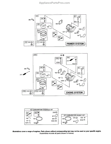 This is a carburetor overhaul kit for 3.5 to 4 HP Max Series Quantum and 5 HP Industrial Plus Engines. It is secured to the side or top of a lawnmower engine, depending on the manufacturer. The carburetor is crucial to the overall performance of an engine because it is responsible for mixing the right amounts of air and fuel. The fuel from the fuel tank flows through a hose into the carburetor, which allows it to drip into a bowl. The carburetor can become dirty or clogged over time for a variety of reasons. When this happens, it is often a good idea to take it apart and replace the components inside. There are other telltale signs that the carburetor needs an overhaul or repair. These include an engine that won't start, an engine that's running lean, an engine that's running rich, and one that's flooded. This high-quality carburetor overhaul kit comes with everything needed to repair or rebuild a carburetor, including gaskets, needle, float, seals, and an instruction manual. Aside from lawnmowers, it works with specific models of leaf blower/vacuums, generators, pressure washers, wood chippers, and small engines from Briggs & Stratton, Craftsman, Cub Cadet, Lawn-Boy, MTD, Murray, Simplicity, and Toro. It is an OEM product sourced directly from the manufacturer and is sold individually. Please refer to the diagram of the specific model for the correct location and application of the components.