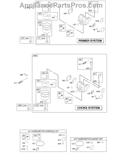 Parts for Briggs & Stratton 12G702-2626-01: Carburetor Parts