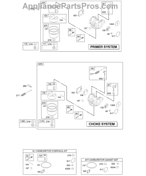 Parts for Briggs & Stratton 12L887-1508-21: Carburetor Parts