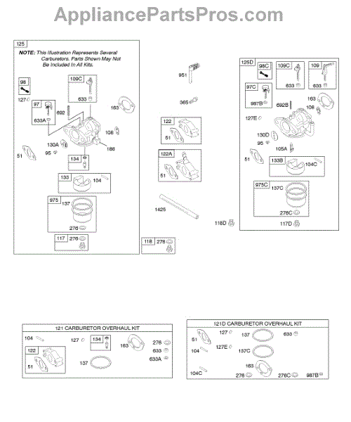 This replacement part is a carburetor overhaul kit. This kit includes multiple parts that are needed to rebuild or repair a damaged carburetor.Be sure to diagnose the issue before purchasing this kit to ensure that the needed parts are included. A damaged carburetor may cause hard starting or black smoke exhaust during use. Wear work gloves when working with the carburetor. The engine should be powered down and cooled off before starting this job.This is a genuine OEM replacement part manufactured by Midwest Engine. This part is sold individually.