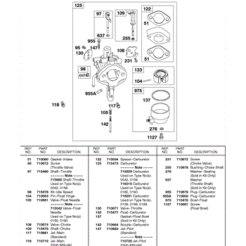 Parts for Briggs & Stratton 138437-0084-01: Carburetor Parts