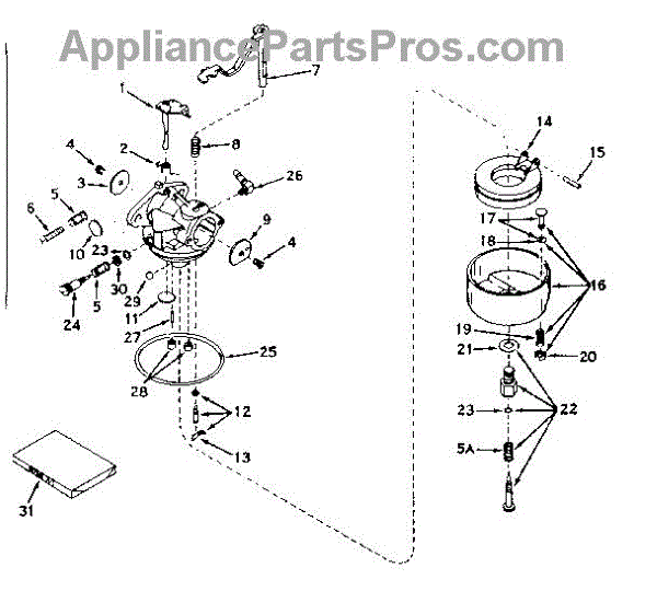 Parts for Craftsman 143161262: Carburetor No. 631298 Parts