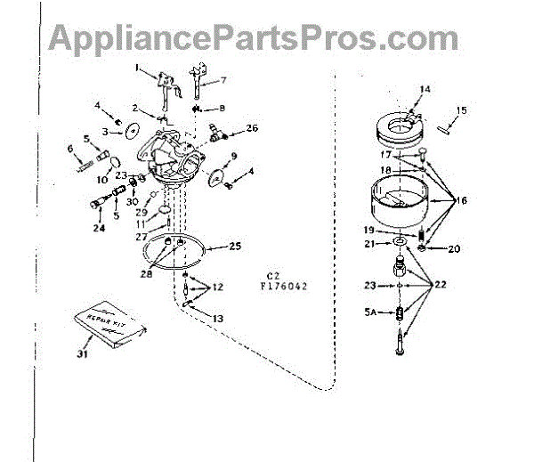 Parts for Craftsman 143176042: Carburetor No. 631101 Parts