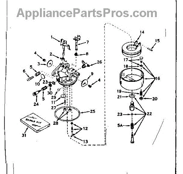 Parts for Craftsman 143176052: Carburetor No. 631128. Parts