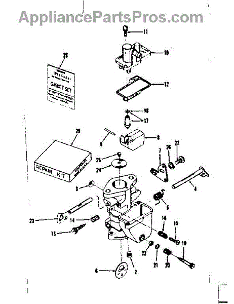Parts for Craftsman 14324251: Carburetor No. 29636 Parts
