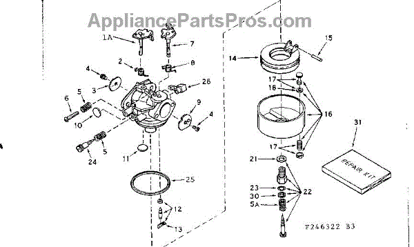 Parts for Craftsman 143246322: Carburetor No. 631810 Parts