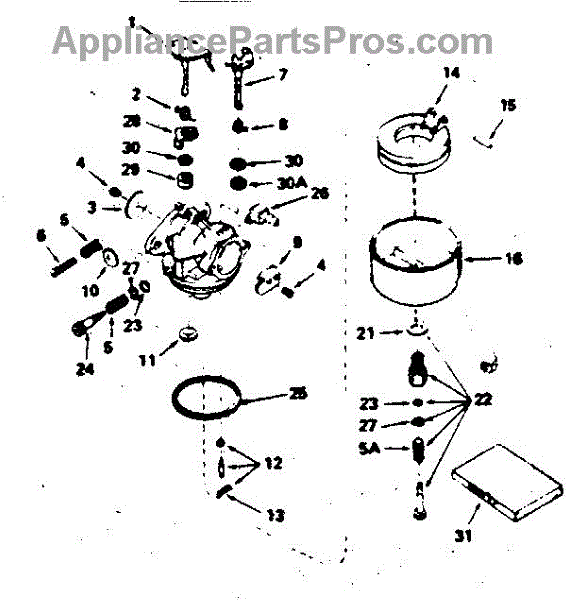 Parts for Craftsman 143286272: Carburetor No. 631977 Parts