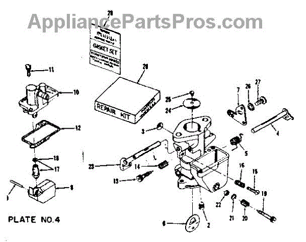 Parts for Craftsman 14336250: Carburetor No. 29636 Parts
