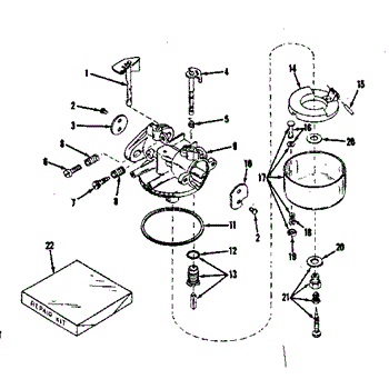 Parts for Craftsman 14342200: No. 28627 Carburetor And No. 28626 Carburetor Parts