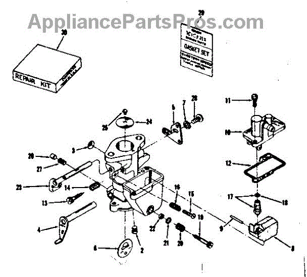 Parts for Craftsman 14344401: Carburetor No. 29349 Parts