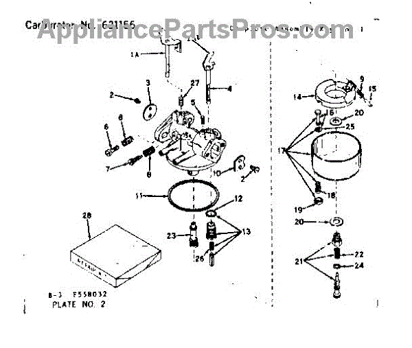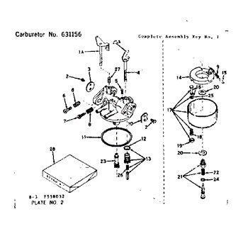Parts for Craftsman 143558032: Carburetor No. 631156 Parts