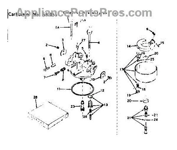 Parts for Craftsman 143558052: Carburetor No. 631156 Parts