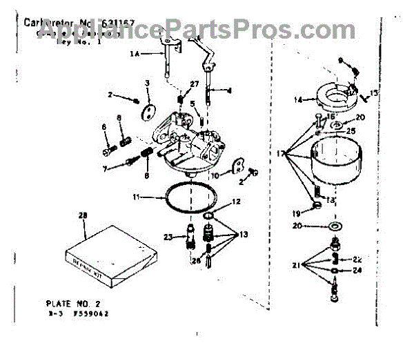 Parts for Craftsman 143559042: Carburetor No. 631157 Parts