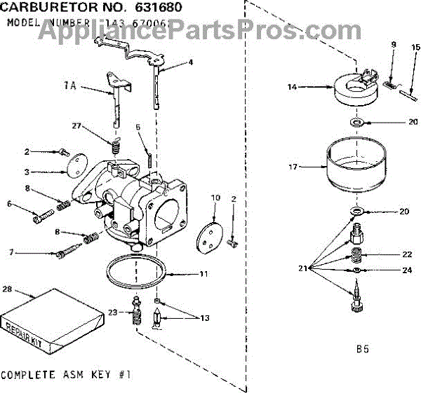 Parts for Craftsman 143670062: Carburetor Parts