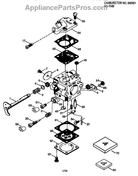 Parts for Craftsman 143992070: Carburetor No. 640901 Parts