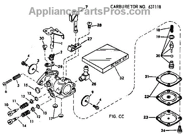 Parts for Craftsman 91760058: Carburetor No. 631118 Parts