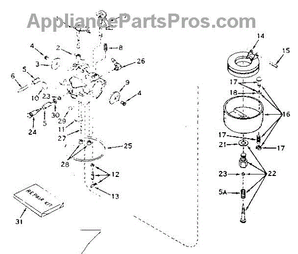 Parts for Lauson H25-25133F: Carburetor No. 631070A Parts