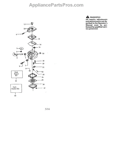 This part is a replacement carburetor rebuild kit. This is a genuine OEM part made by Husqvarna and has been sourced directly from the manufacturer. This part's intended use is to fix a broken or defective carburetor in outdoor power equipment.This carburetor rebuild kit can be used to help fix the carburetor in an internal combustion engine. It includes all necessary gaskets or parts required for repairing the carburetor. Work in a well-ventilated area when working with carburetors. When working on or near an engine, it's important to make sure the equipment is powered off and completely cooled down before starting any repairs. For more accurate information on how and where to install this carburetor rebuild kit, reference the appropriate owner's manual and specific equipment diagrams.This is an authentic OEM replacement part made of high-quality materials. This carburetor repair kit can be used with different models of outdoor power equipment that have been manufactured by Husqvarna, Poulan, and other brands. Part sold individually.