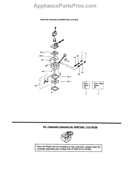 This kit includes all parts necessary to repair the carburetor on certain models of small engine outdoor power equipment.Internal combustion engines require a proper ratio of air to fuel in order to run. The carburetor is responsible for sending a combination of fuel and air to the motor for ignition. Because the carburetor is used every time the engine is started, it can deteriorate over time and may need to be repaired or replaced. Signs of a worn-out or deteriorating carburetor include backfiring, overheating, excessive black smoke, and reduced engine performance. This carburetor repair kit is a genuine OEM replacement part that has been sourced directly from the manufacturer. This carburetor repair kit can be used to fix various different models of Husqvarna, WeedEater, and Poulan blowers, trimmers, and hedge trimmers. Please note this part is sold individually.