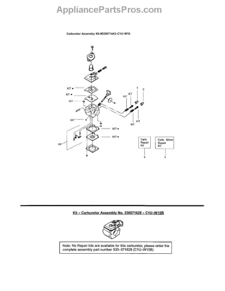 This kit includes all parts necessary to repair the carburetor on certain models of small engine outdoor power equipment.Internal combustion engines require a proper ratio of air to fuel in order to run. The carburetor is responsible for sending a combination of fuel and air to the motor for ignition. Because the carburetor is used every time the engine is started, it can deteriorate over time and may need to be repaired or replaced. Signs of a worn-out or deteriorating carburetor include backfiring, overheating, excessive black smoke, and reduced engine performance. This carburetor repair kit is a genuine OEM replacement part that has been sourced directly from the manufacturer. This carburetor repair kit can be used to fix various different models of Husqvarna, WeedEater, and Poulan blowers, trimmers, and hedge trimmers. Please note this part is sold individually.