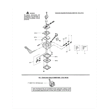 This genuine carburetor repair kit is designed for use in select trimmer engines. The carburetor is responsible for combining the gas and air mixture that will go into the engine. Fuel and air flow into the carburetor through filters to remove any potential debris or particulates. Then, they are passed through a series of tubes and diaphragms and mixed together in the inner tube before being released into the engine through a butterfly valve. Over time, the high heat and constant pressure can damage the gaskets, diaphragms, and other parts of the carburetor. It may be necessary to replace everything with this carburetor repair kit that includes multiple components. This genuine OEM carb kit is compatible with select lawn and garden trimmers from Craftsman, Poulan, Weed Eater, and Jonsered. There are more than 50 compatible models available that can use this kit. This carburetor repair kit comes with 16 pieces in total, including the gaskets and diaphragms, the primer bulb and primer bulb assembly, and other necessary hardware. It is sold as a single unit. Always cool the engine completely and work in a well-ventilated area when performing carb rebuilds and replacements or other engine repairs.