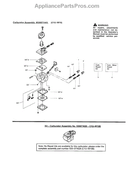 This kit includes all parts necessary to repair the carburetor on certain models of small engine outdoor power equipment.Internal combustion engines require a proper ratio of air to fuel in order to run. The carburetor is responsible for sending a combination of fuel and air to the motor for ignition. Because the carburetor is used every time the engine is started, it can deteriorate over time and may need to be repaired or replaced. Signs of a worn-out or deteriorating carburetor include backfiring, overheating, excessive black smoke, and reduced engine performance. This carburetor repair kit is a genuine OEM replacement part that has been sourced directly from the manufacturer. This carburetor repair kit can be used to fix various different models of Husqvarna, WeedEater, and Poulan blowers, trimmers, and hedge trimmers. Please note this part is sold individually.
