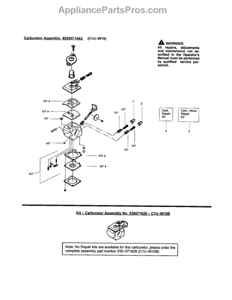 This kit includes all parts necessary to repair the carburetor on certain models of small engine outdoor power equipment.Internal combustion engines require a proper ratio of air to fuel in order to run. The carburetor is responsible for sending a combination of fuel and air to the motor for ignition. Because the carburetor is used every time the engine is started, it can deteriorate over time and may need to be repaired or replaced. Signs of a worn-out or deteriorating carburetor include backfiring, overheating, excessive black smoke, and reduced engine performance. This carburetor repair kit is a genuine OEM replacement part that has been sourced directly from the manufacturer. This carburetor repair kit can be used to fix various different models of Husqvarna, WeedEater, and Poulan blowers, trimmers, and hedge trimmers. Please note this part is sold individually.
