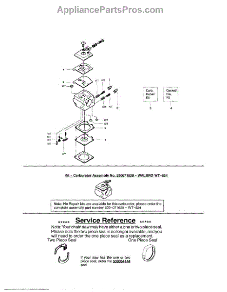 This carburetor repair kit is made for use in chainsaws by several manufacturers. It has each of the needed components to get a chainsaw back into working order if the carburetor is damaged or no longer working. The carburetor is the component in a chainsaw that controls how fuel and air mix together before being ignited in the cylinder to keep the engine running. One of the signs that the carburetor may be having problems is if the chainsaw doesn't want to start its engine even if the fuel tank is completely full. Testing the carburetor can be done by taking out the air filter and adding a small amount of fuel to the carburetor. Pull the starter rope and watch to see if the engine turns on for a few seconds before stopping. If this is the case, the carburetor will need to be cleaned, rebuilt, or replaced. This individual carburetor repair kit is designed to work with chainsaws by Poulan, Poulan Pro, Craftsman, and Husqvarna. It is a genuine OEM product that is provided directly by the manufacturer. A few basic tools and work gloves may be needed to use the repair kit.