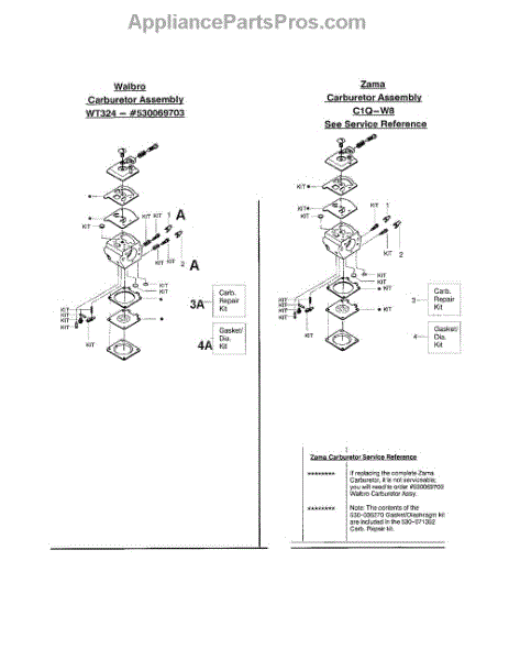 This carburetor repair kit is made for use in chainsaws by several manufacturers. It has each of the needed components to get a chainsaw back into working order if the carburetor is damaged or no longer working. The carburetor is the component in a chainsaw that controls how fuel and air mix together before being ignited in the cylinder to keep the engine running. One of the signs that the carburetor may be having problems is if the chainsaw doesn't want to start its engine even if the fuel tank is completely full. Testing the carburetor can be done by taking out the air filter and adding a small amount of fuel to the carburetor. Pull the starter rope and watch to see if the engine turns on for a few seconds before stopping. If this is the case, the carburetor will need to be cleaned, rebuilt, or replaced. This individual carburetor repair kit is designed to work with chainsaws by Poulan, Poulan Pro, Craftsman, and Husqvarna. It is a genuine OEM product that is provided directly by the manufacturer. A few basic tools and work gloves may be needed to use the repair kit.