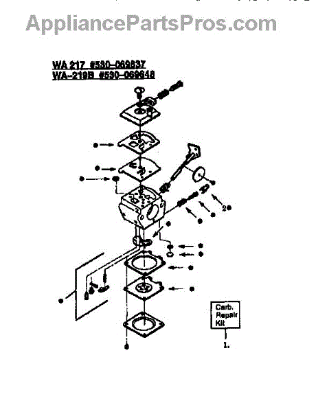 Parts for Weedeater GTI15: Carburetor Wa-219 And Wa-217 Parts