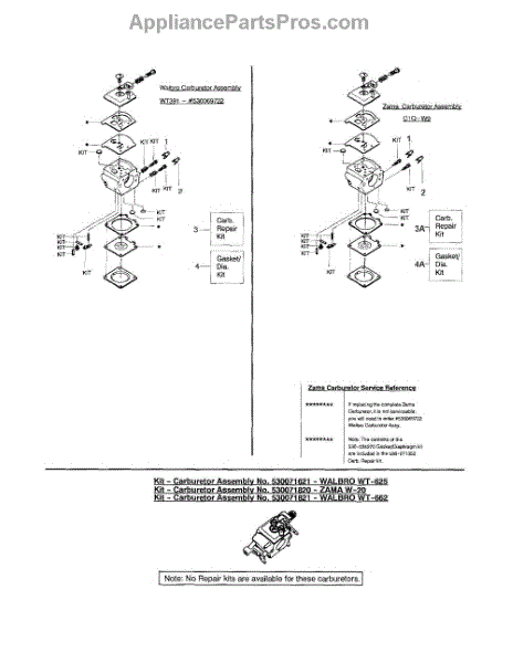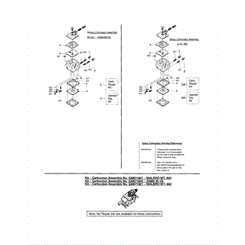Carburetor gasket kit for chainsaws, trimmers, blowers, and edgers. Replace when experiencing fuel leaks or poor engine performance. Verify fit.