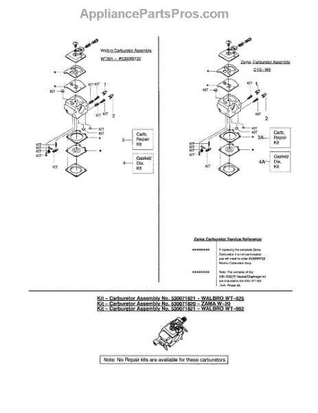 Carburetor gasket kit for chainsaws, trimmers, blowers, and edgers. Replace when experiencing fuel leaks or poor engine performance. Verify fit.