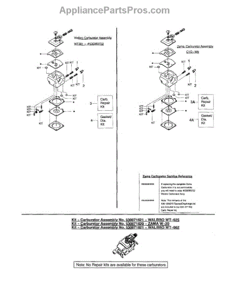 This carburetor repair kit is made for use in chainsaws by several manufacturers. It has each of the needed components to get a chainsaw back into working order if the carburetor is damaged or no longer working. The carburetor is the component in a chainsaw that controls how fuel and air mix together before being ignited in the cylinder to keep the engine running. One of the signs that the carburetor may be having problems is if the chainsaw doesn't want to start its engine even if the fuel tank is completely full. Testing the carburetor can be done by taking out the air filter and adding a small amount of fuel to the carburetor. Pull the starter rope and watch to see if the engine turns on for a few seconds before stopping. If this is the case, the carburetor will need to be cleaned, rebuilt, or replaced. This individual carburetor repair kit is designed to work with chainsaws by Poulan, Poulan Pro, Craftsman, and Husqvarna. It is a genuine OEM product that is provided directly by the manufacturer. A few basic tools and work gloves may be needed to use the repair kit.