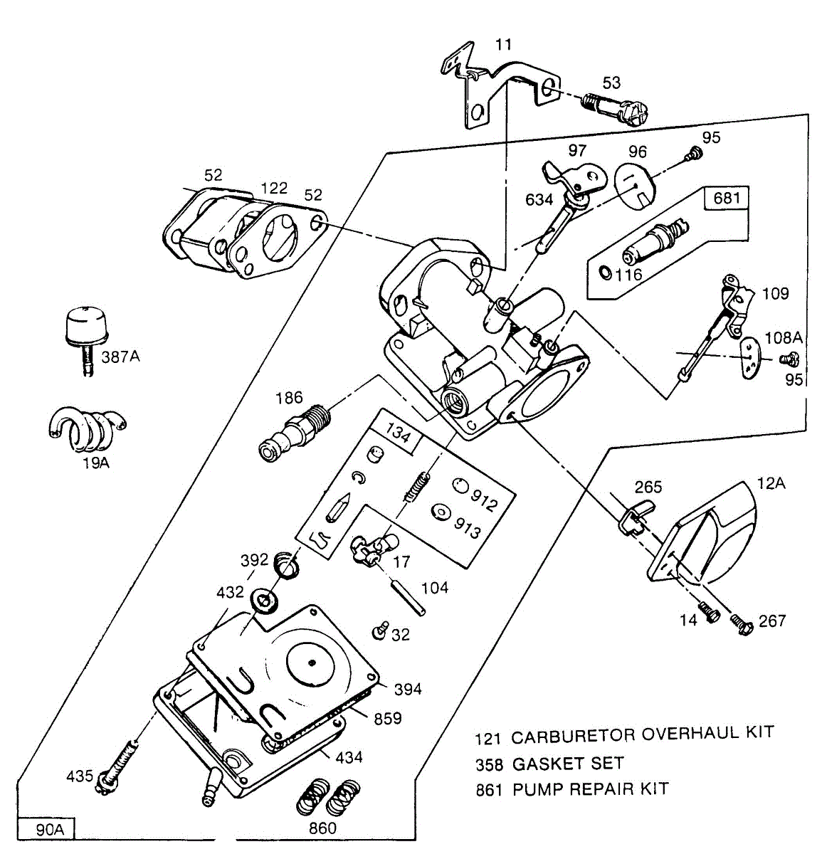 Parts for Briggs & Stratton 062032-0631-02: Carburetor,Wet-Bulb Primer Parts