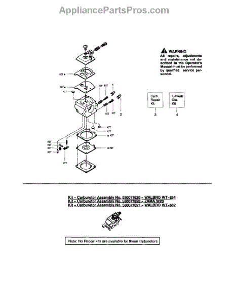 Parts for Poulan 2055 TYPE 1-5: Carburetor - Wt324 - #530069703 Parts