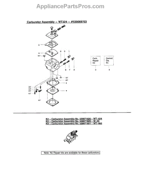 Parts for Poulan 2150 TYPE 7: Carburetor - Wt324 - #530069703 Parts