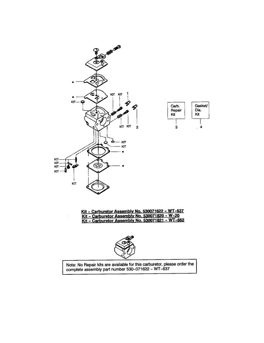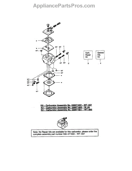 Parts for Poulan 1950LE TYPE 2: Carburetor - Wt600 - #530071410 Parts